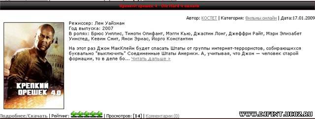 <a title="Нажми для просмотра $TITLE$ целиком" href="$ENTRY_URL$"><b> Подробнее/Скачать</b></a> <?if($MODER_PANEL$)?>$MODER_PANEL$<?endif?> | Рейтинг: <?if($RATING$)?><img src="http://t0pka.info/reating/r$RATING_NUM$.gif" border="0"><?endif?> | Просмотров: [<b>$READS$</b>] | <a title="Количество комментариев $TITLE$ ($COMMENTS_NUM$)" href="$COMMENTS_URL$"> Комментарии ($COMMENTS_NUM$)</a>
